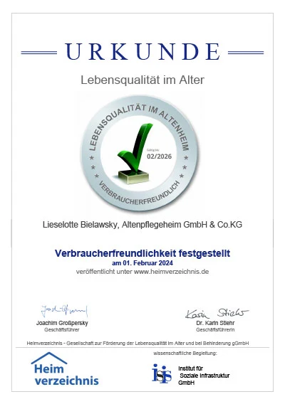 Wir führen regelmäßige Qualitätskontrollen durch, um mit eigenen Feedback-Mechanismen die Pflegequalität kontinuierlich zu verbessern. Dank einer offenen und transparenten Kommunikation zwischen Pflegepersonal, Bewohnern und deren Familien herrscht bei uns ein harmonisches Miteinander.
