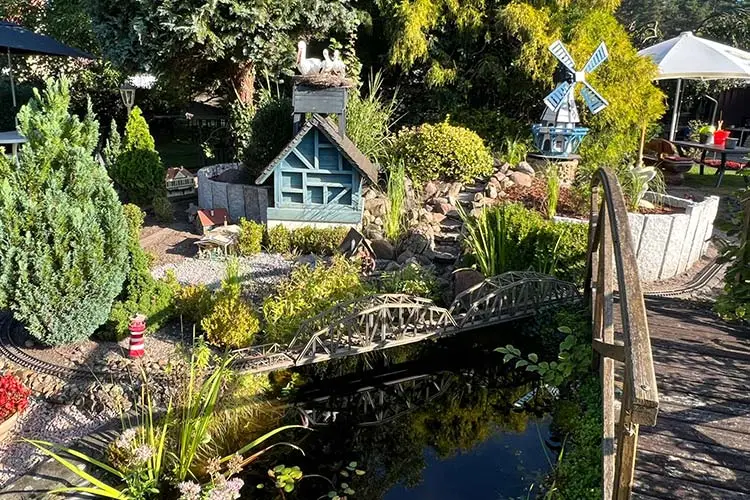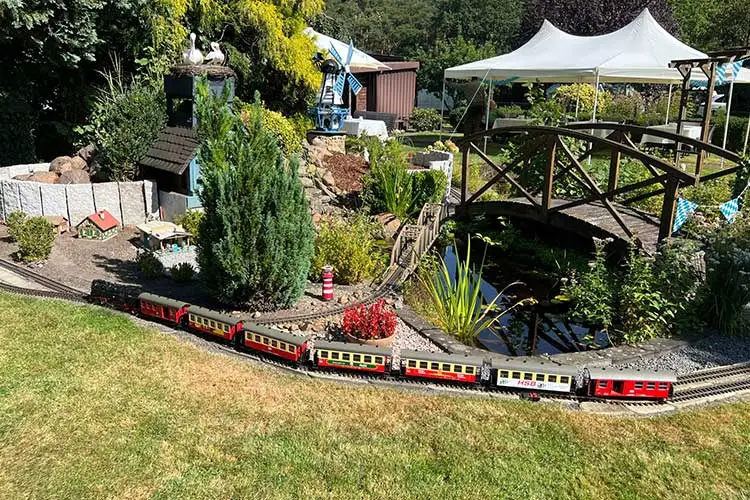 für die Technik-Begeisterten dreht unsere Eisenbahn im Garten stetig ihre Runden -